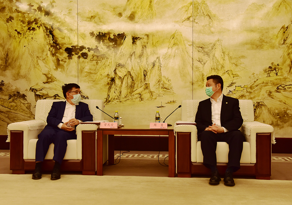 周勇對曾光安一行到訪中建集團表示歡迎,對柳工集團長期以來給予中建集團的信任和支持表示感謝,他簡要介紹了中建集團發展歷程、經營業績以及海外事業發展布局等情況,并分享了參加兩會和學習習近平總書記重要講話精神的體會。