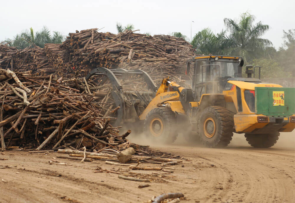 今天,我們走進(jìn)了某大型木業(yè)公司看看配備抱叉屬具的柳工林業(yè)裝載機(jī)表現(xiàn)如何